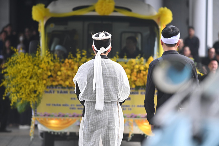 Tại tang lễ của mẹ, nam ca sĩ đội khăn tang, gương mặt lộ rõ vẻ đau buồn và đôi mắt sưng húp do khóc nhiều khi trải qua nỗi mất mát lớn trong đời. Tuấn Hưng đứng cạnh linh cữu của mẹ, liên tục cúi đầu cảm ơn những người đã đến chia buồn, an ủi anh trong thời điểm này.