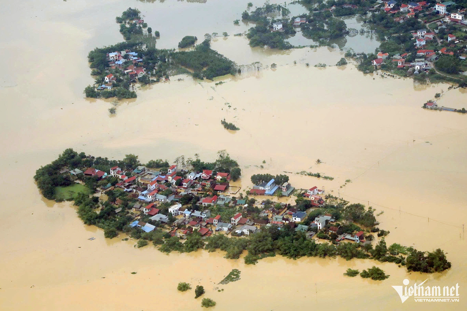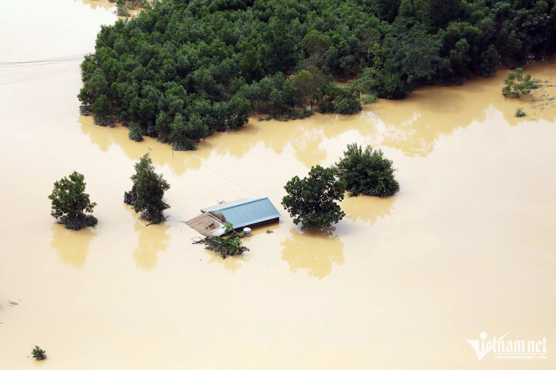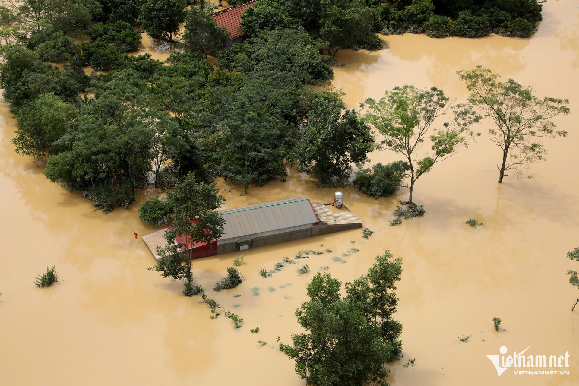 Theo thông tin từ chính quyền địa phương, nước từ sông Trung đổ về khiến xã này bị ngập sâu hơn 1m, có nơi bị nước dâng lên gần mái nhà.