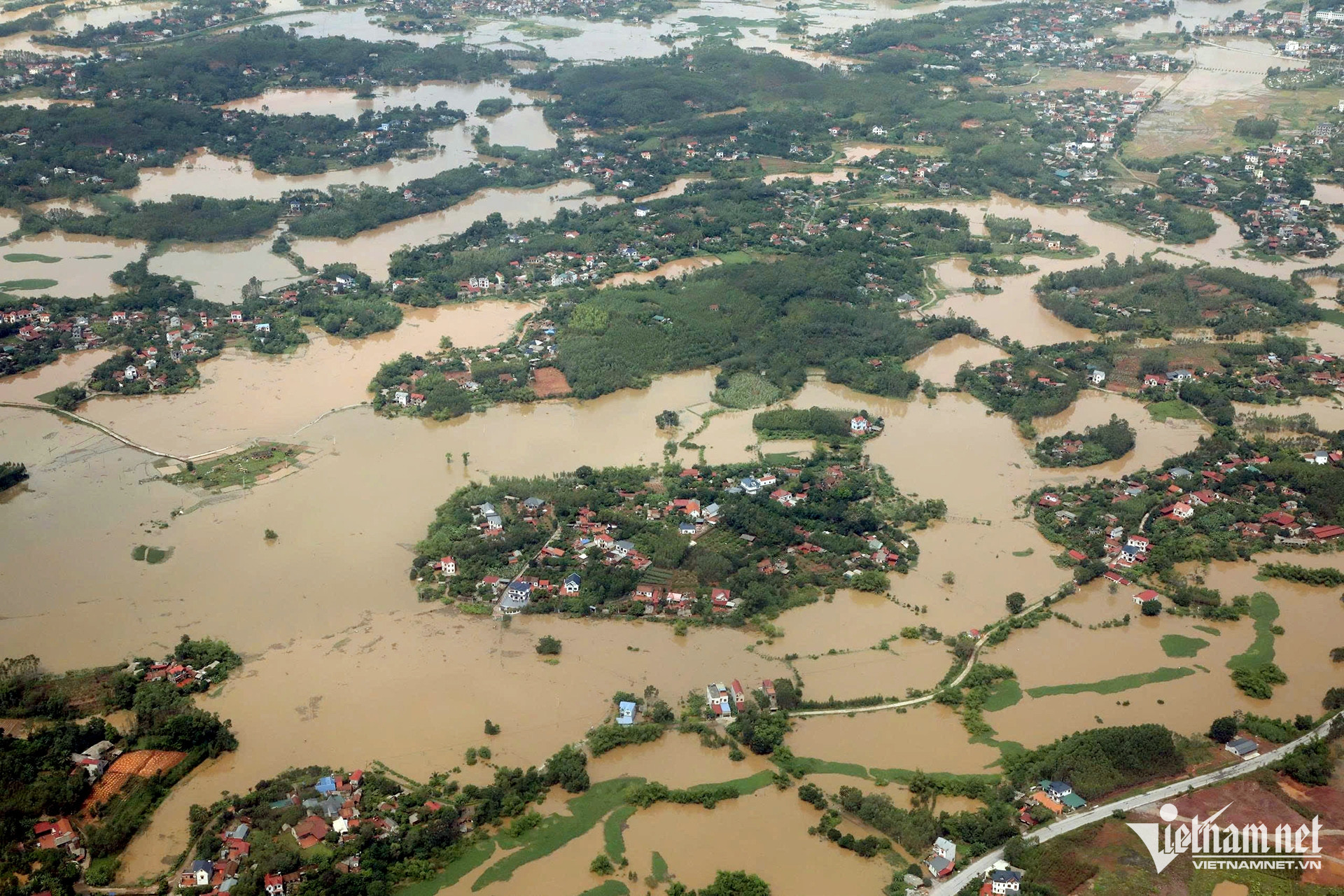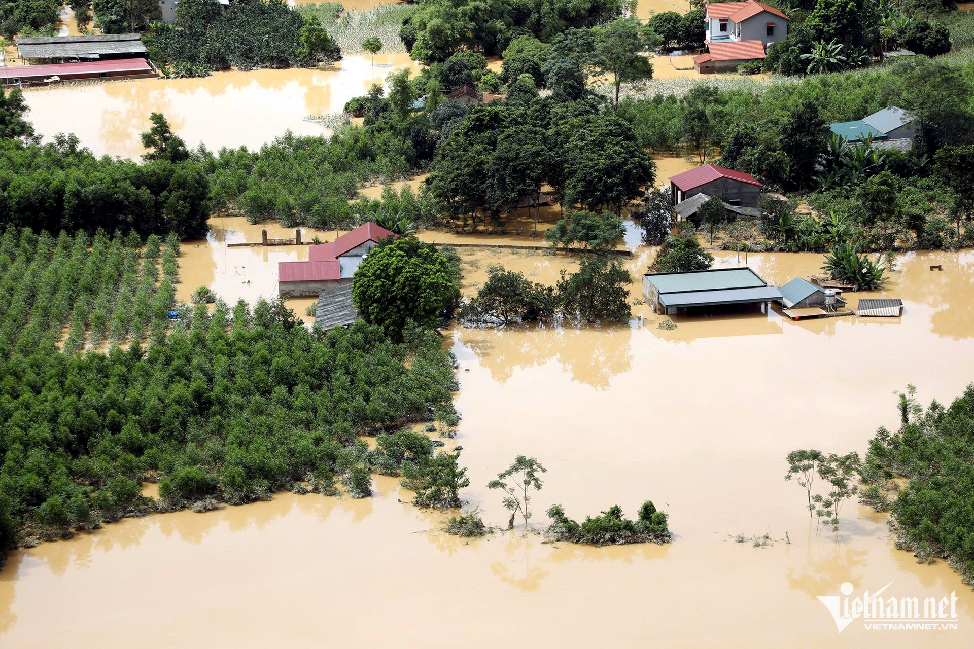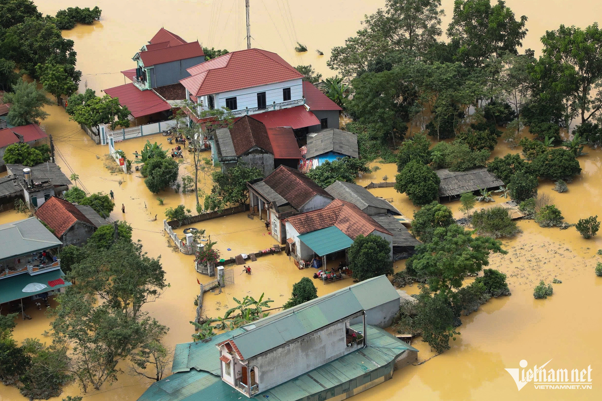 Theo thông tin từ chính quyền địa phương, nước từ sông Trung đổ về khiến xã này bị ngập sâu hơn 1m, có nơi bị nước dâng lên gần mái nhà.