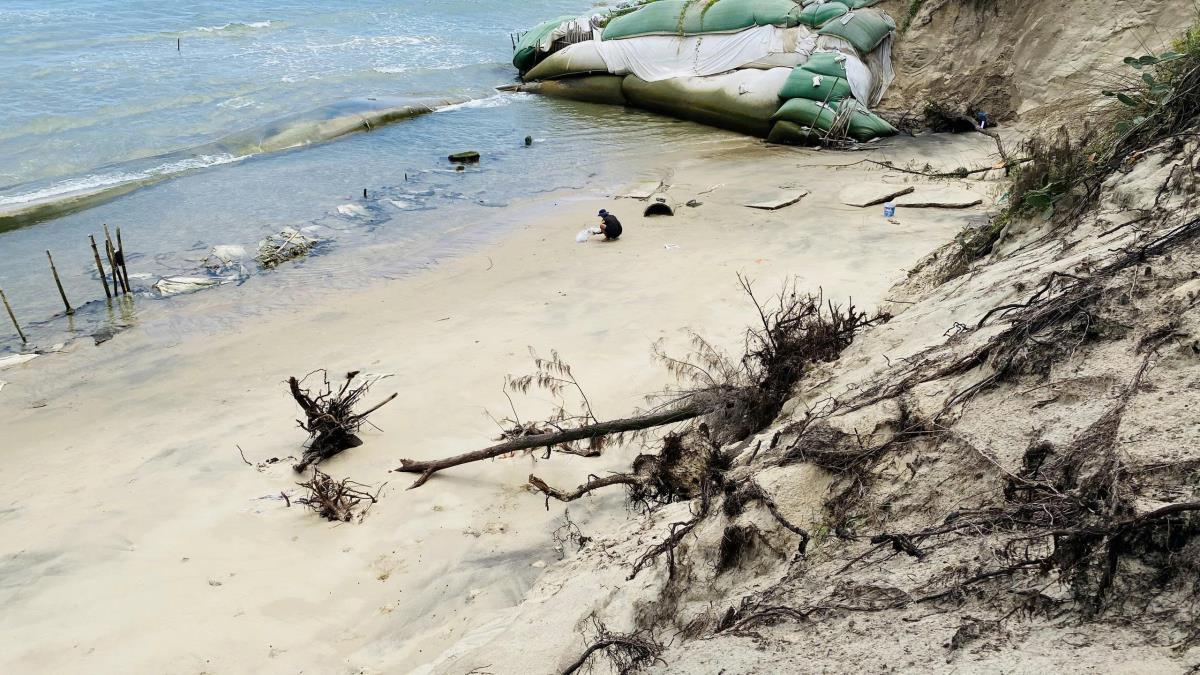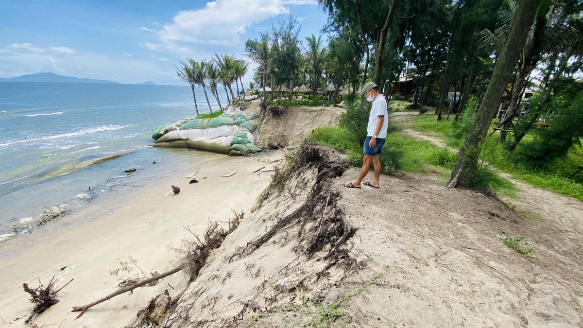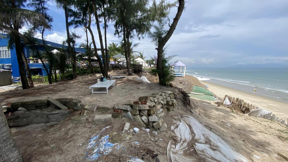 Cách đây khoảng 1 tuần ngày, mưa trút xối xả kết hợp sóng biển dâng cao, khiến tình trạng xói lở hiện ăn sâu vào trong bờ thêm 4-5m. Trước đó, đoạn bờ biển này bị phá tan hoang từ đợt mưa to gió lớn, do ảnh hưởng của bão số 10 hồi cuối tháng 9.