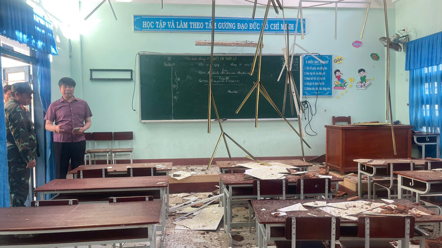 Cơn bão đã gây thiệt hại nhiều hạng mục tại các cơ sở giáo dục như: mái lớp học bị tốc; phòng học, phòng chức năng ngập nước; trang thiết bị giảng dạy hư hỏng. (Ảnh: Báo Gia Lai).