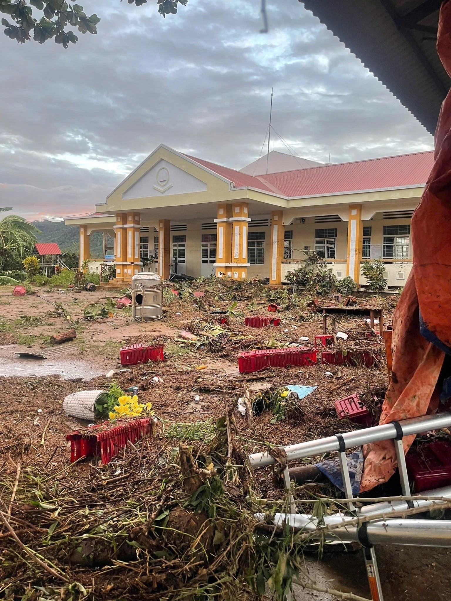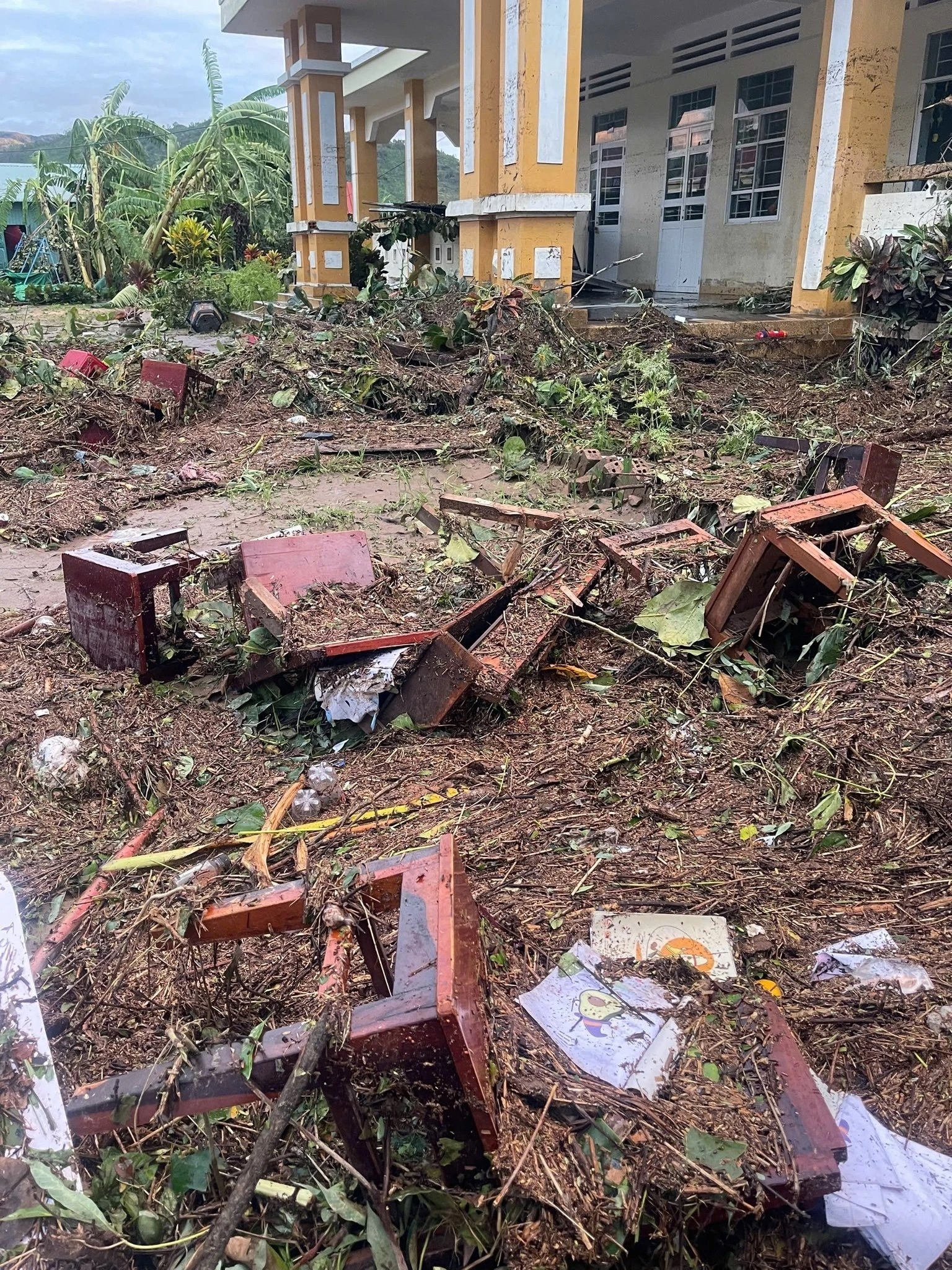 Tại tỉnh Gia Lai, nhiều trường học cũng ngổn ngang, phòng học lộn xộn, bàn ghế và thiết bị hư hại. (Ảnh: Đại học Quy Nhơn).