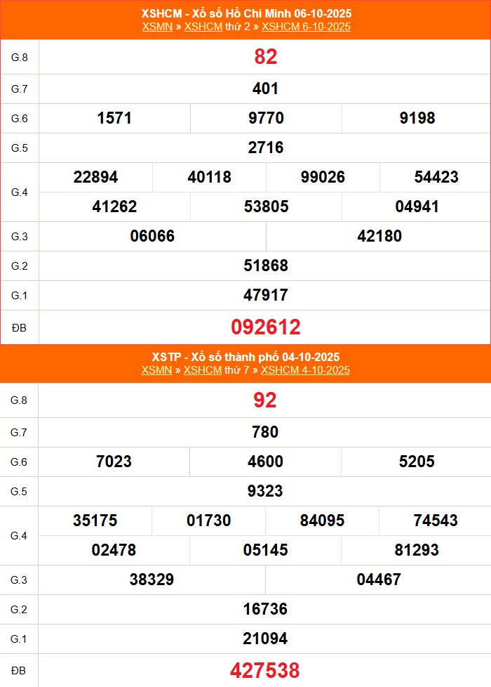 KẾT QUẢ XỔ SỐ HỒ CHÍ MINH THỨ 7 TUẦN TRƯỚC