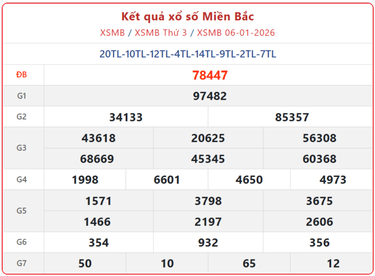 - Xổ số miền Bắc mới nhất ngày 6/1/2026. Xem lại KQXSMB ngày 6/1/2026