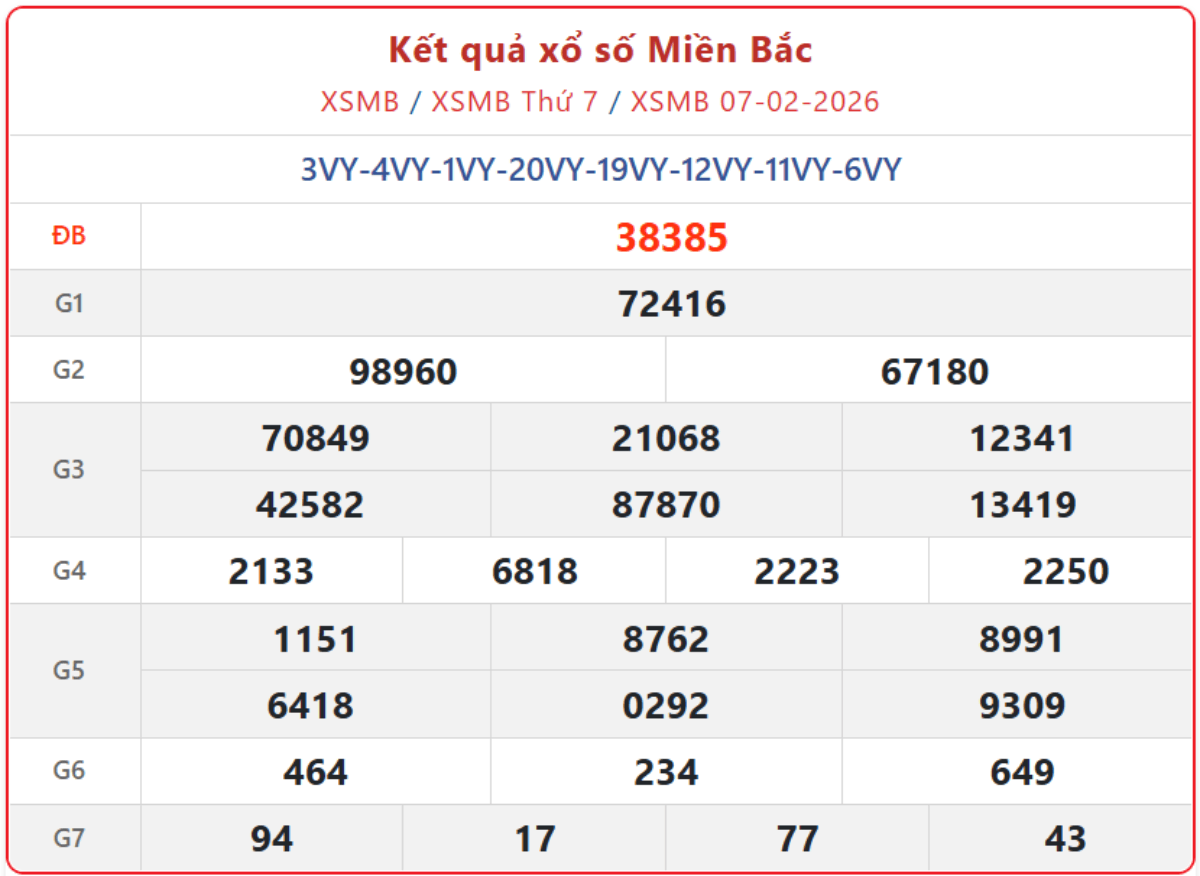 - Xổ số miền Bắc mới nhất ngày 7/2/2026. Xem lại KQXSMB ngày 7/2/2026