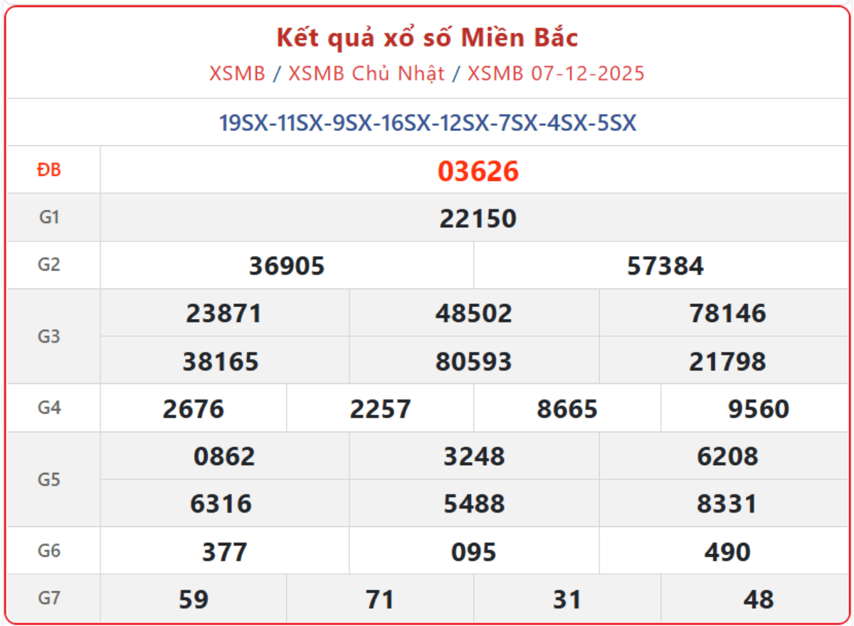 - Xổ số miền Bắc mới nhất ngày 7/12/2025. Xem lại KQXSMB ngày 7/12/2025