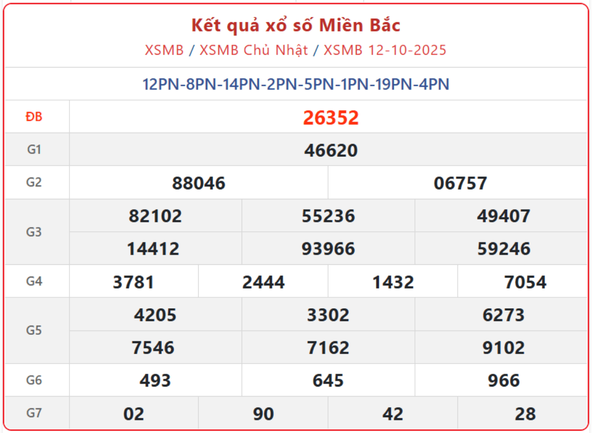 XSMB 12/10, kết quả xổ số miền Bắc (KQXSMB) ngày 12/10/2025.
