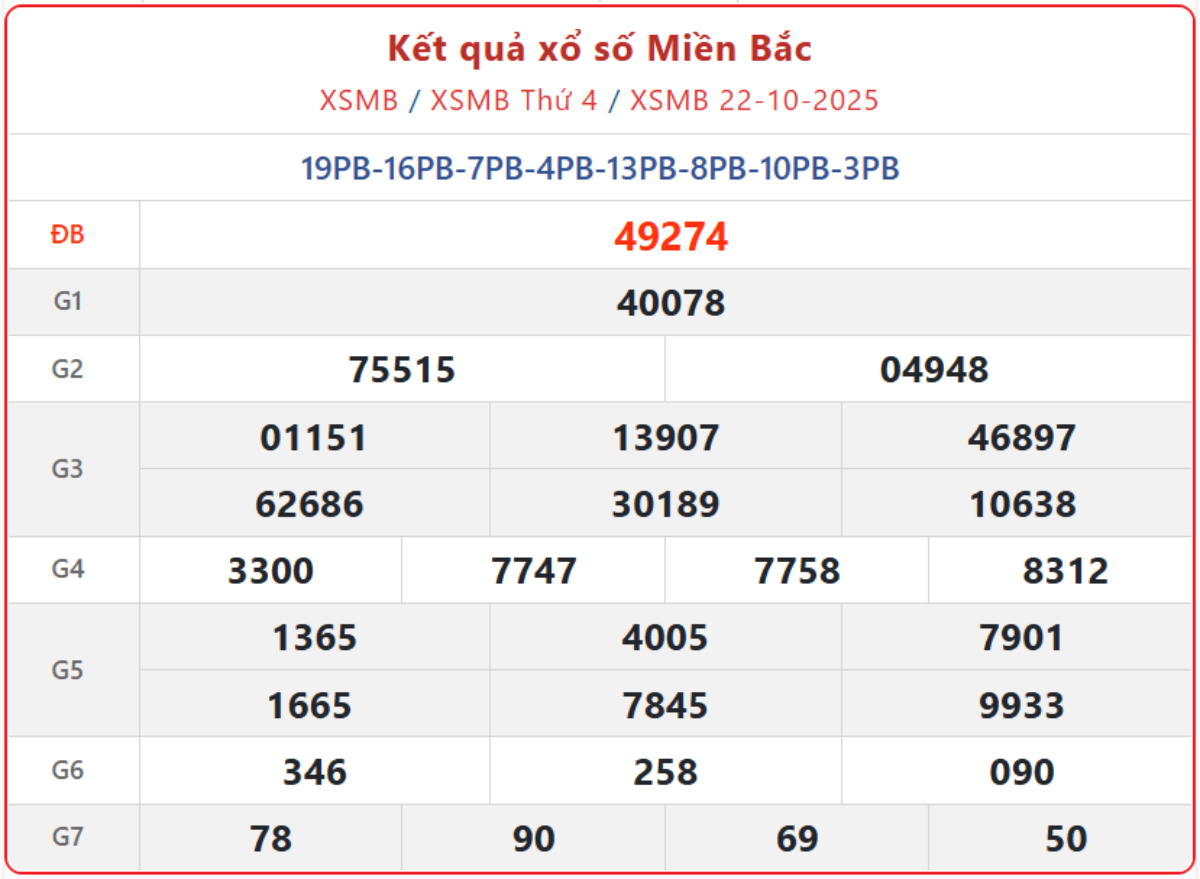 - Xổ số miền Bắc mới nhất ngày 22/10/2025. Xem lại KQXSMB ngày 22/10/2025