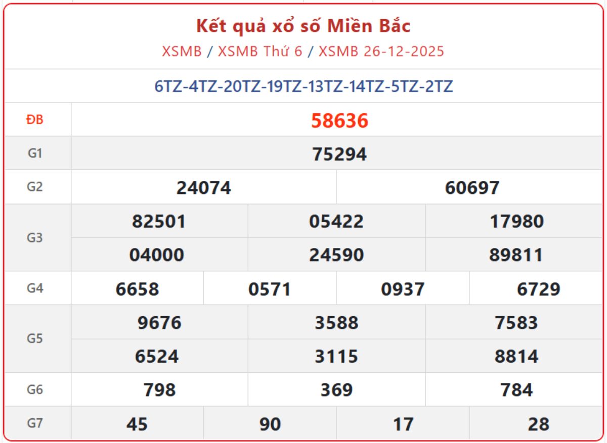 - Xổ số miền Bắc mới nhất ngày 26/12/2025. Xem lại KQXSMB ngày 26/12/2025