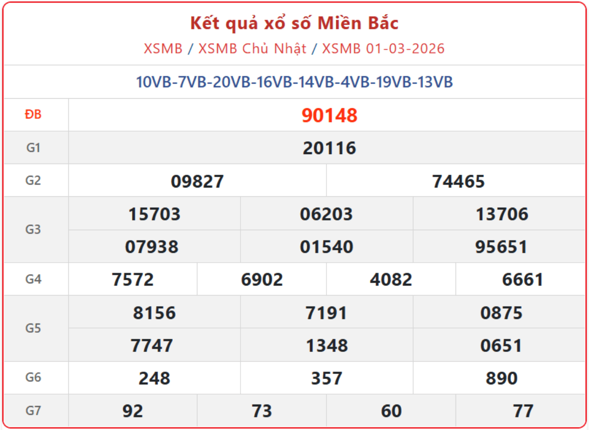 - Xổ số miền Bắc mới nhất ngày 1/3/2026. Xem lại KQXSMB ngày 1/3/2026