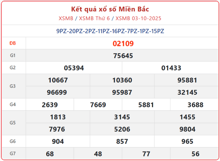 - Xổ số miền Bắc mới nhất ngày 3/10/2025. Xem lại KQXSMB ngày 3/10/2025