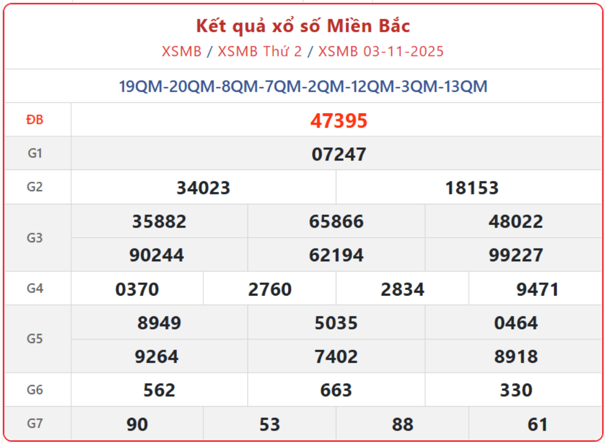 - Xổ số miền Bắc mới nhất ngày 3/11/2025. Xem lại KQXSMB ngày 3/11/2025