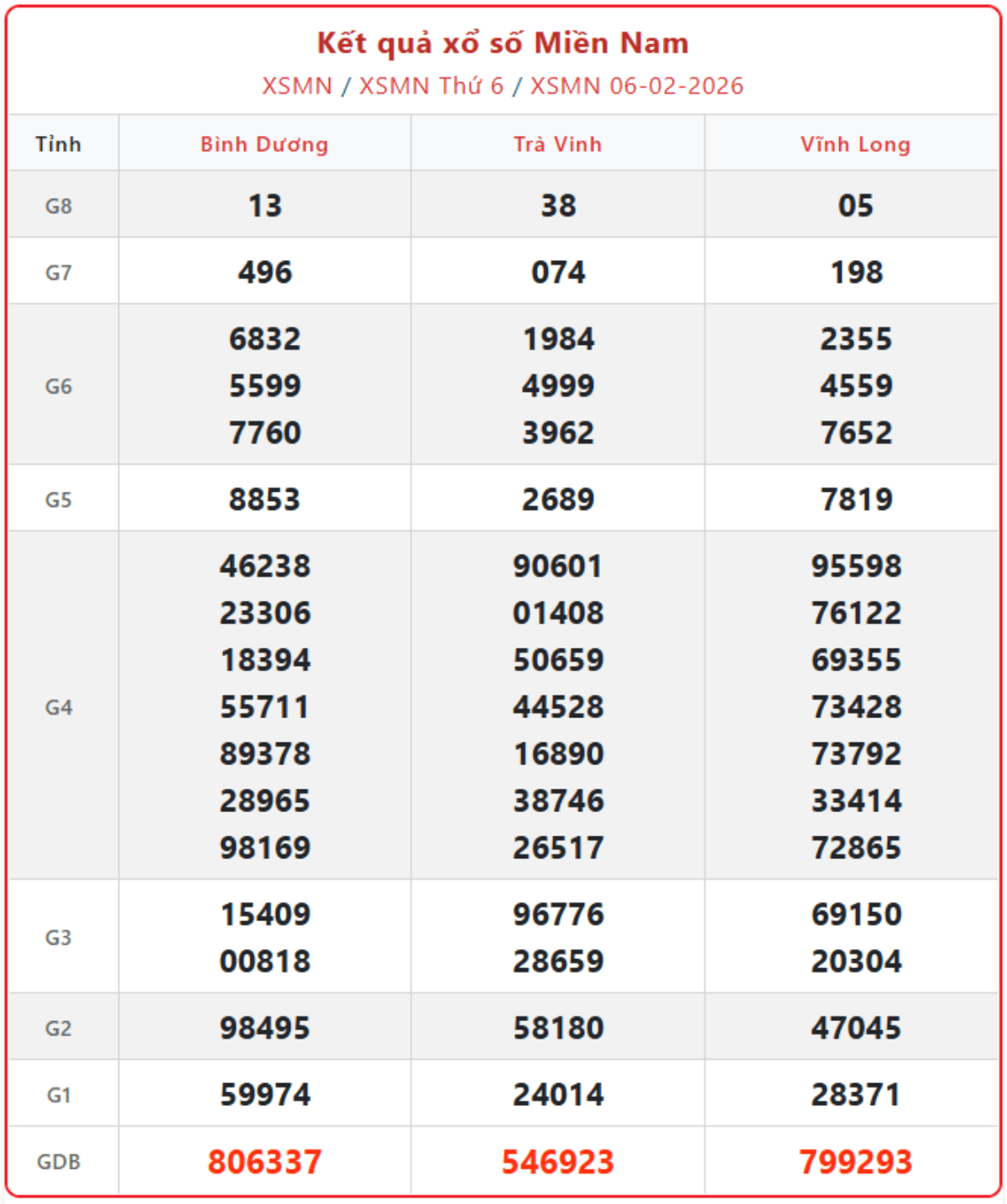 - Dò số miền Nam ngày 6/2/2026. Xem lại kết quả XSMN ngày 6/2/2026