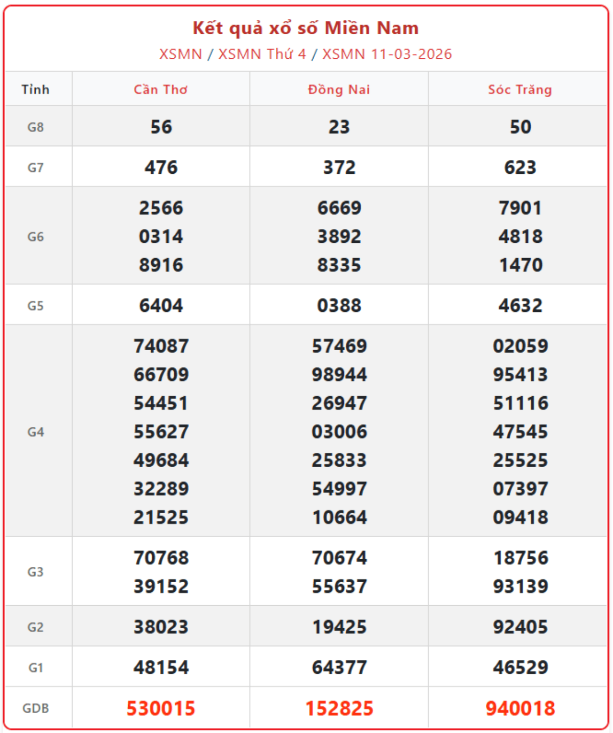 XSMN 11/3, kết quả xổ số miền Nam (KQXSMN) ngày 11/3/2026.
