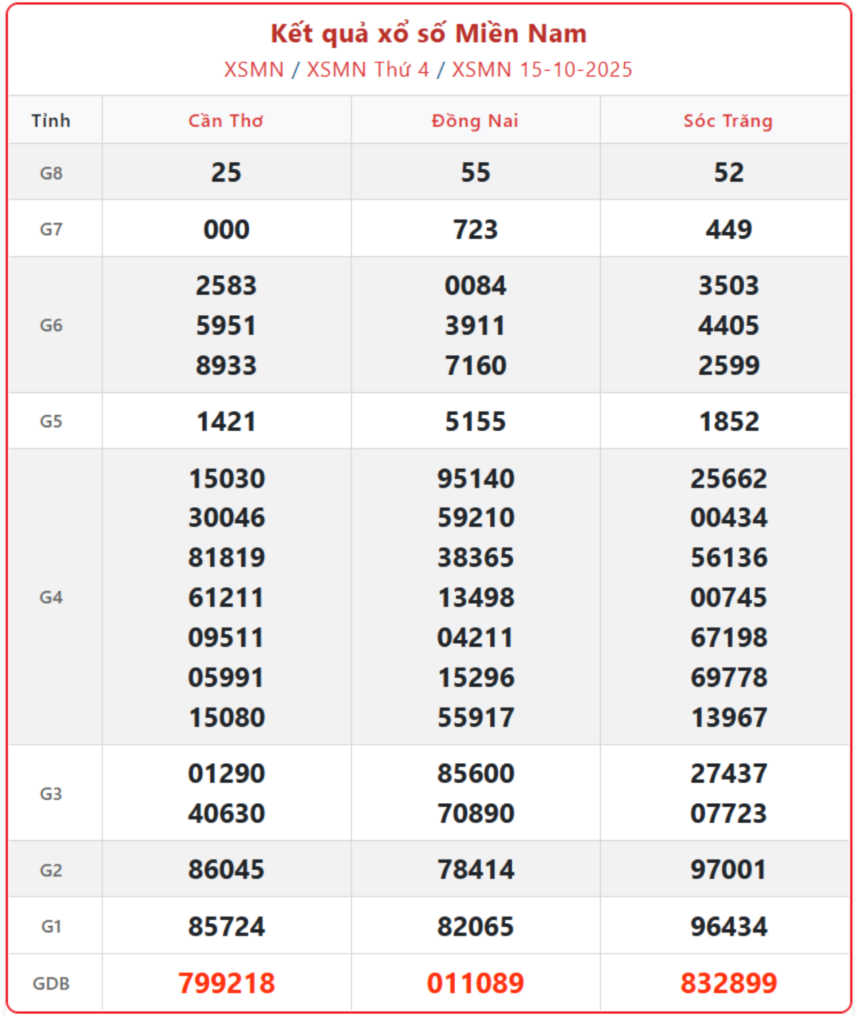 Cập nhật từng giờ xổ số miền Nam ngày 15/10/2025, KQXSMN thứ 4 hàng tuần đầy đủ, chính xác nhất.