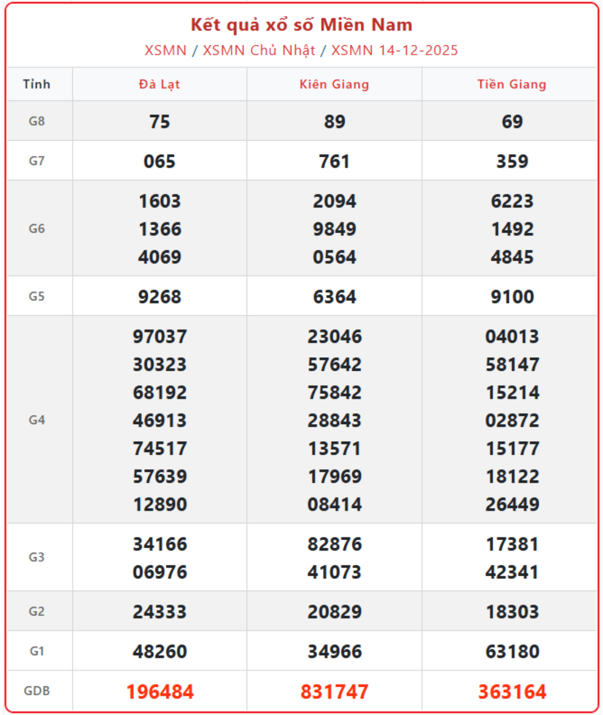Cập nhật từng giờ xổ số miền Nam ngày 14/12/2025, KQXSMN chủ nhật hàng tuần đầy đủ, chính xác nhất.