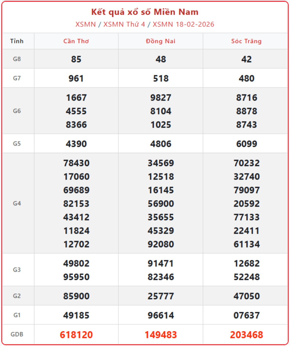 Cập nhật từng giờ xổ số miền Nam ngày 18/2/2026, KQXSMN thứ 4 hàng tuần đầy đủ, chính xác nhất.