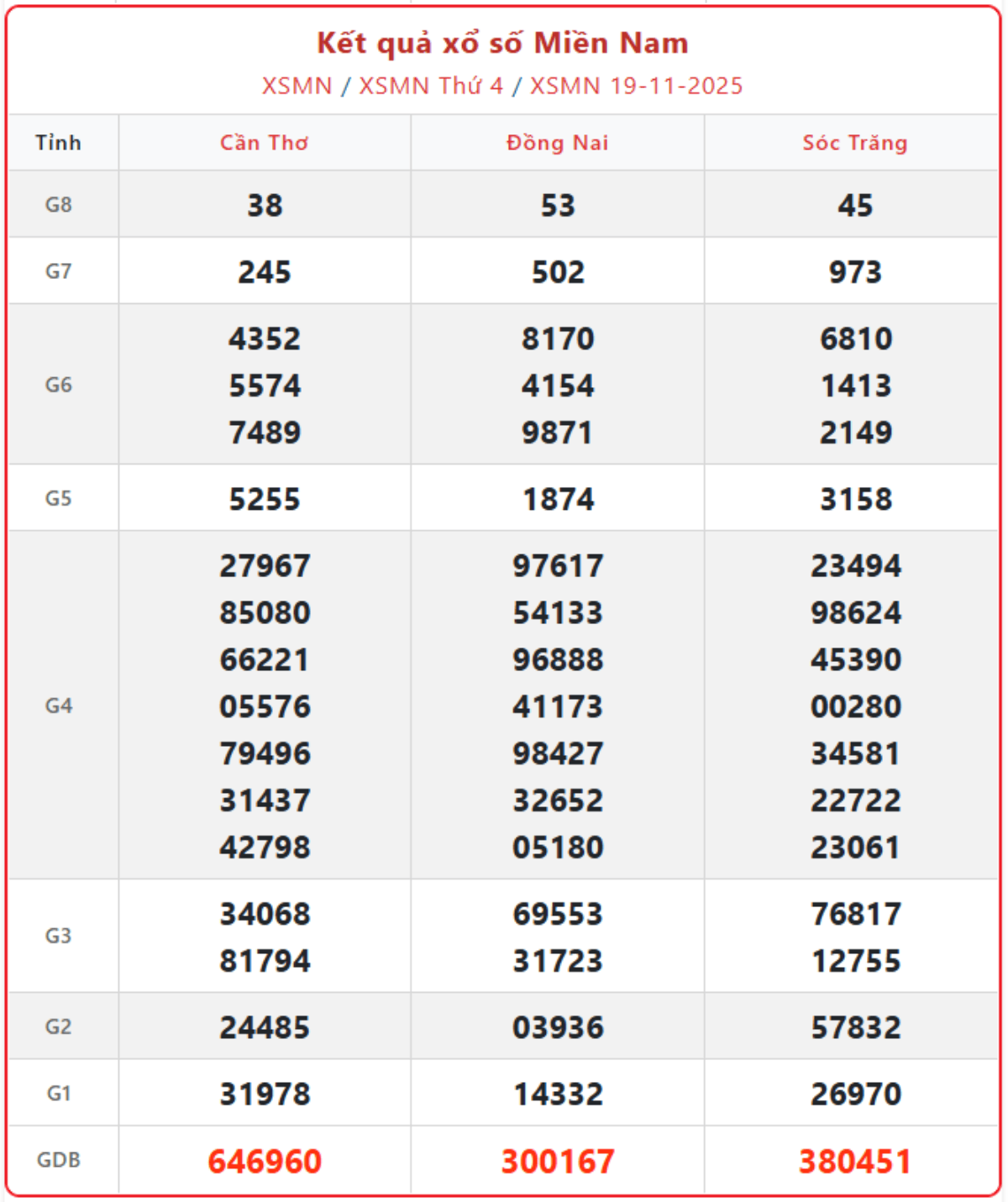 Cập nhật từng giờ xổ số miền Nam ngày 20/11/2025, KQXSMN thứ 5 hàng tuần đầy đủ, chính xác nhất.