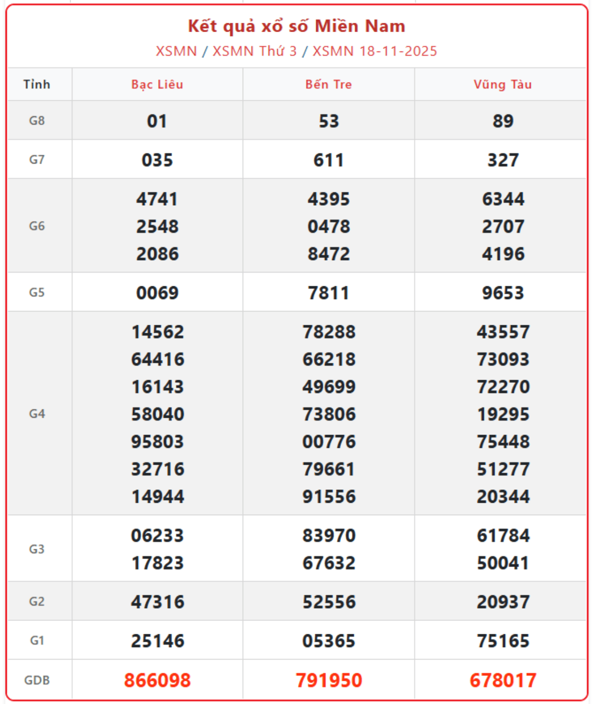 Cập nhật từng giờ xổ số miền Nam ngày 18/11/2025, KQXSMN thứ 3 hàng tuần đầy đủ, chính xác nhất.
