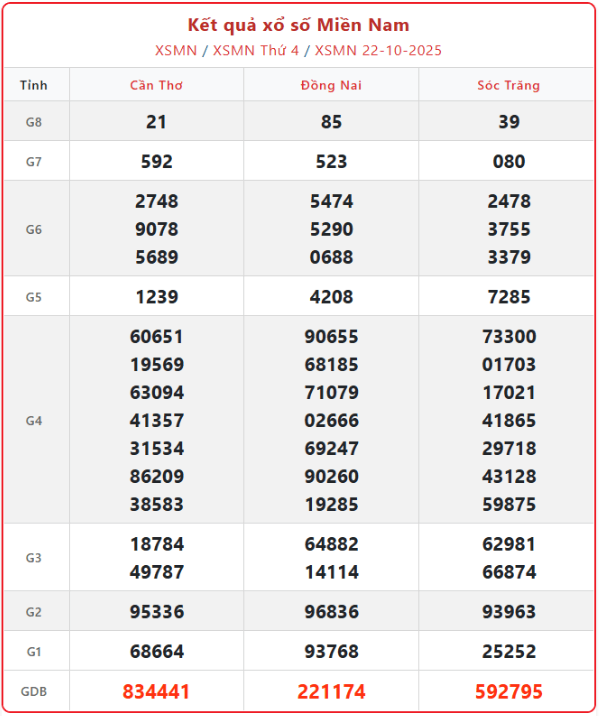 Cập nhật từng giờ xổ số miền Nam ngày 22/10/2025, KQXSMN thứ 4 hàng tuần đầy đủ, chính xác nhất.