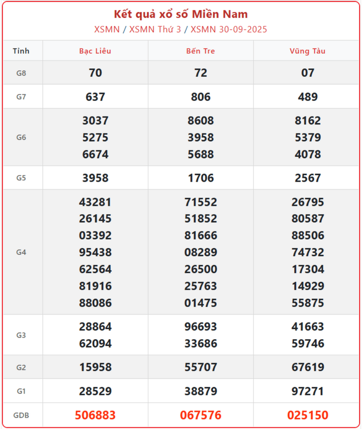 Cập nhật từng giờ xổ số miền Nam ngày 30/9/2025, KQXSMN thứ 3 hàng tuần đầy đủ, chính xác nhất.