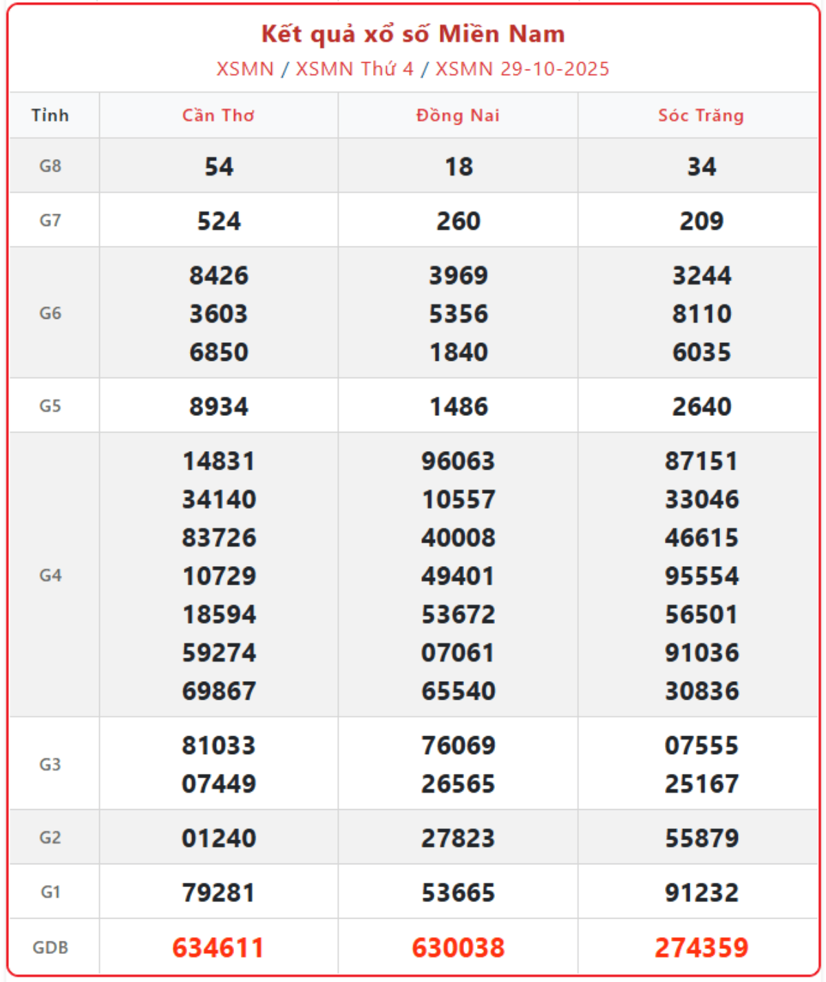 Cập nhật từng giờ xổ số miền Nam ngày 29/10/2025, KQXSMN thứ 4 hàng tuần đầy đủ, chính xác nhất.