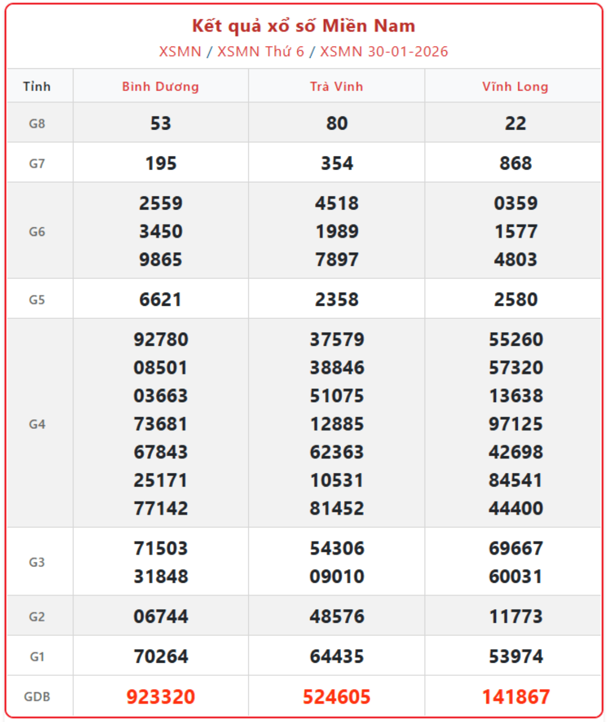 XSMN 30/1, kết quả xổ số miền Nam (KQXSMN) ngày 30/1/2026.
