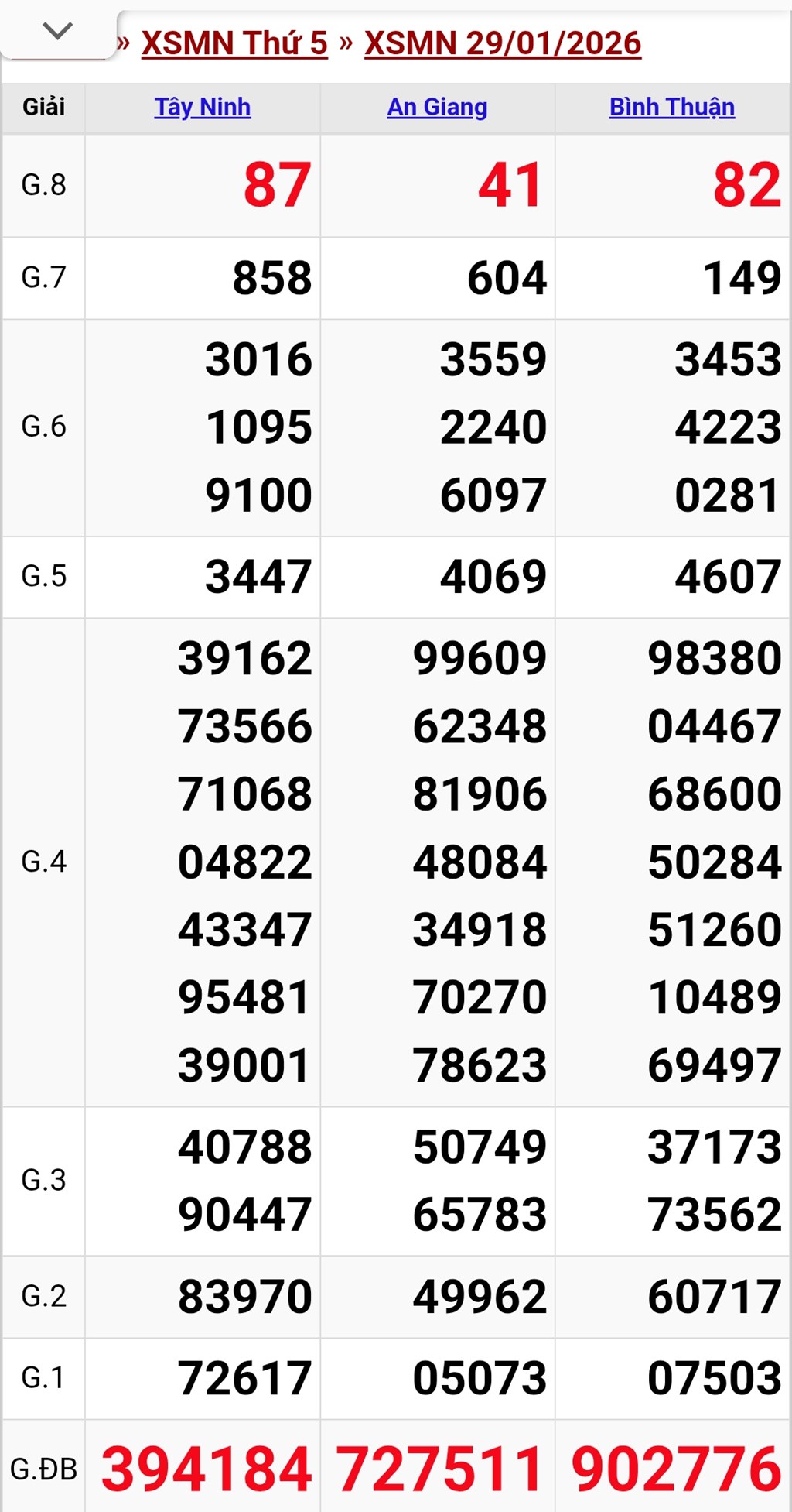 Bnews sẽ cập nhật tất cả các Kết Quả Xổ Số của 3 miền mới nhất hàng ngày với độ chính xác 100% cùng với kết quả của nhiều ngày trước đó.