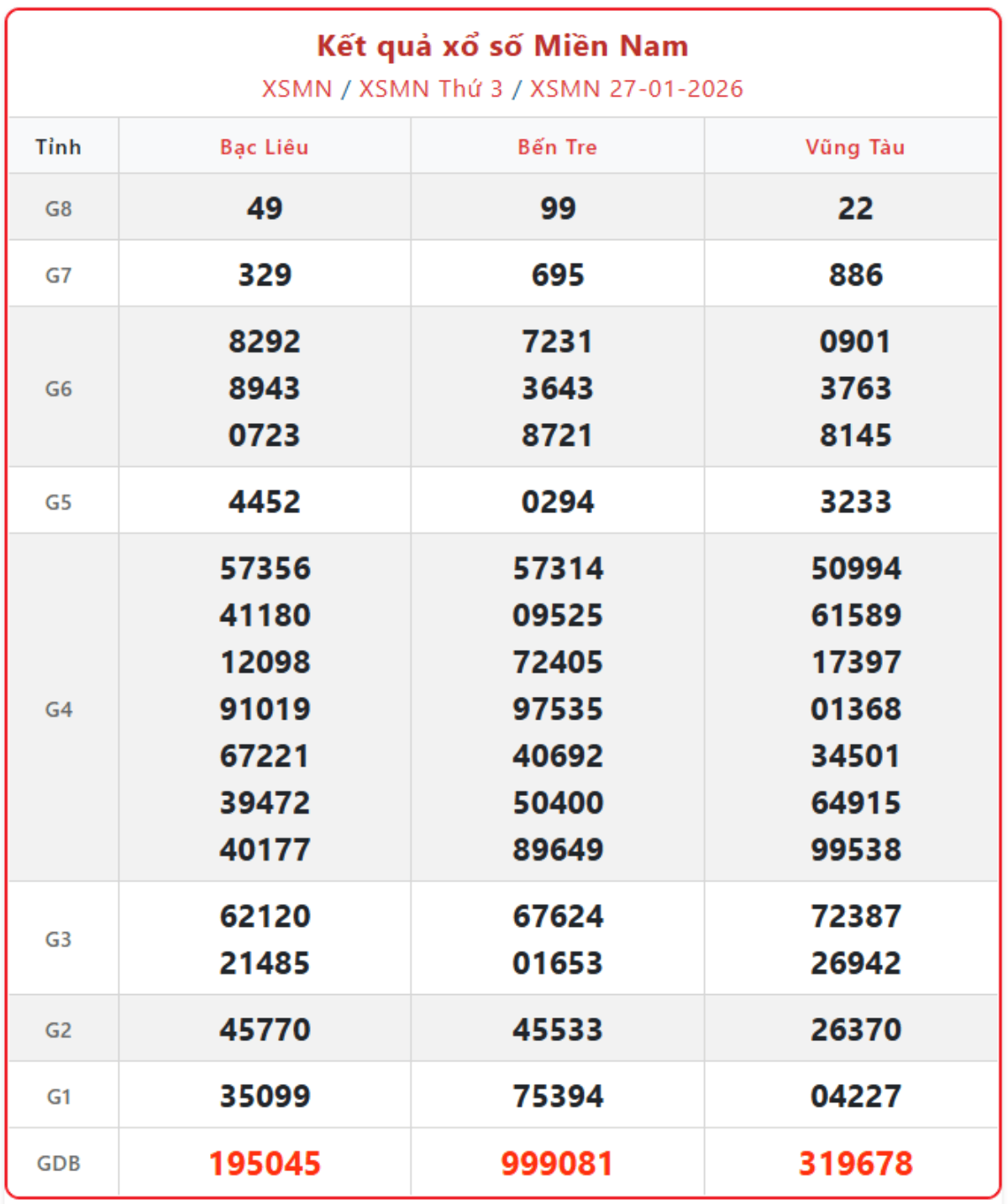 - Dò số miền Nam ngày 27/1/2026. Xem lại kết quả XSMN ngày 27/1/2026