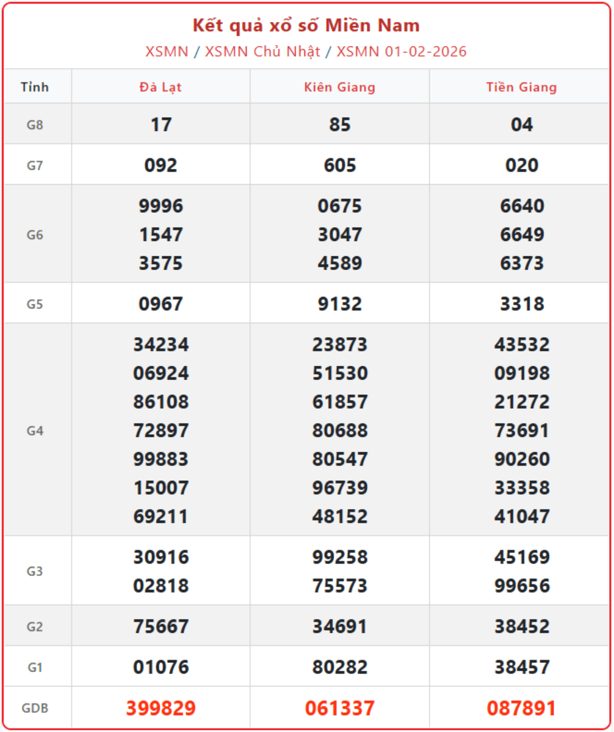 Cập nhật từng giờ xổ số miền Nam ngày 1/2/2026, KQXSMN chủ nhật hàng tuần đầy đủ, chính xác nhất.