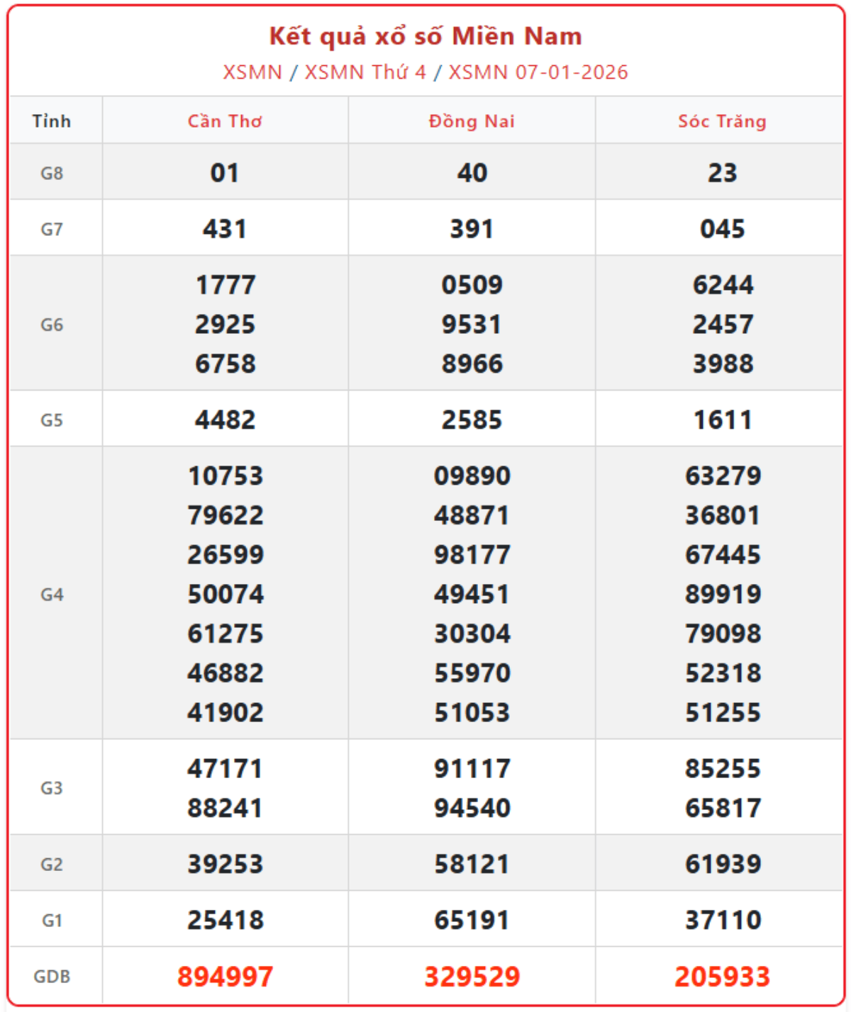 - Dò số miền Nam ngày 7/1/2026. Xem lại kết quả XSMN ngày 7/1/2026