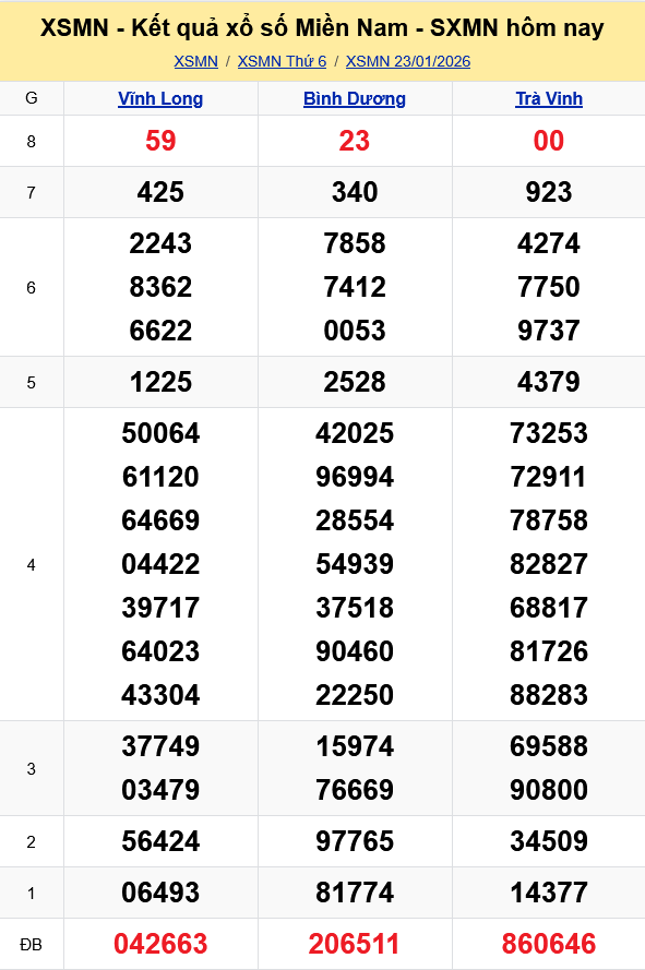 XSMN - Kết quả xổ số miền Nam hôm nay 23/1/2026 - KQXSMN 23/1