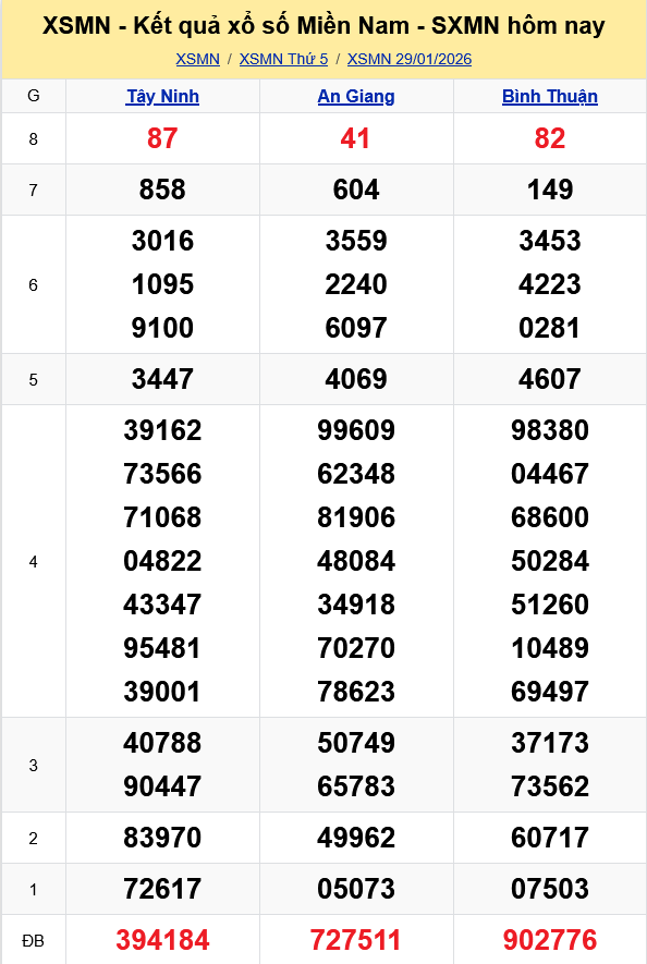 Kết quả xổ số (KQXS) hôm nay thứ Năm ngày 29/1/2026