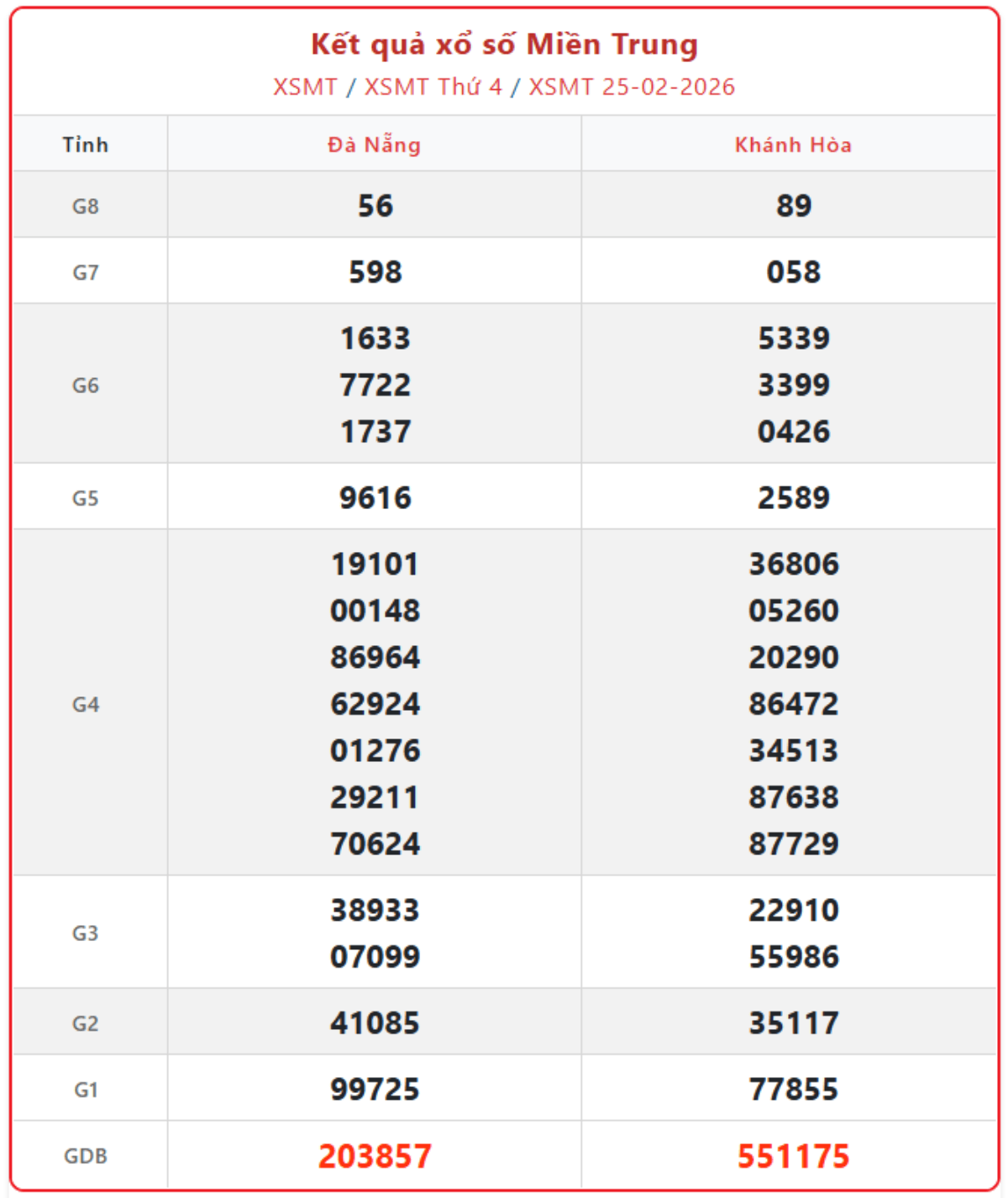 - Dò số miền Trung ngày 25/2/2026. Tra cứu kết quả xổ số miền Trung ngày 25/2/2026