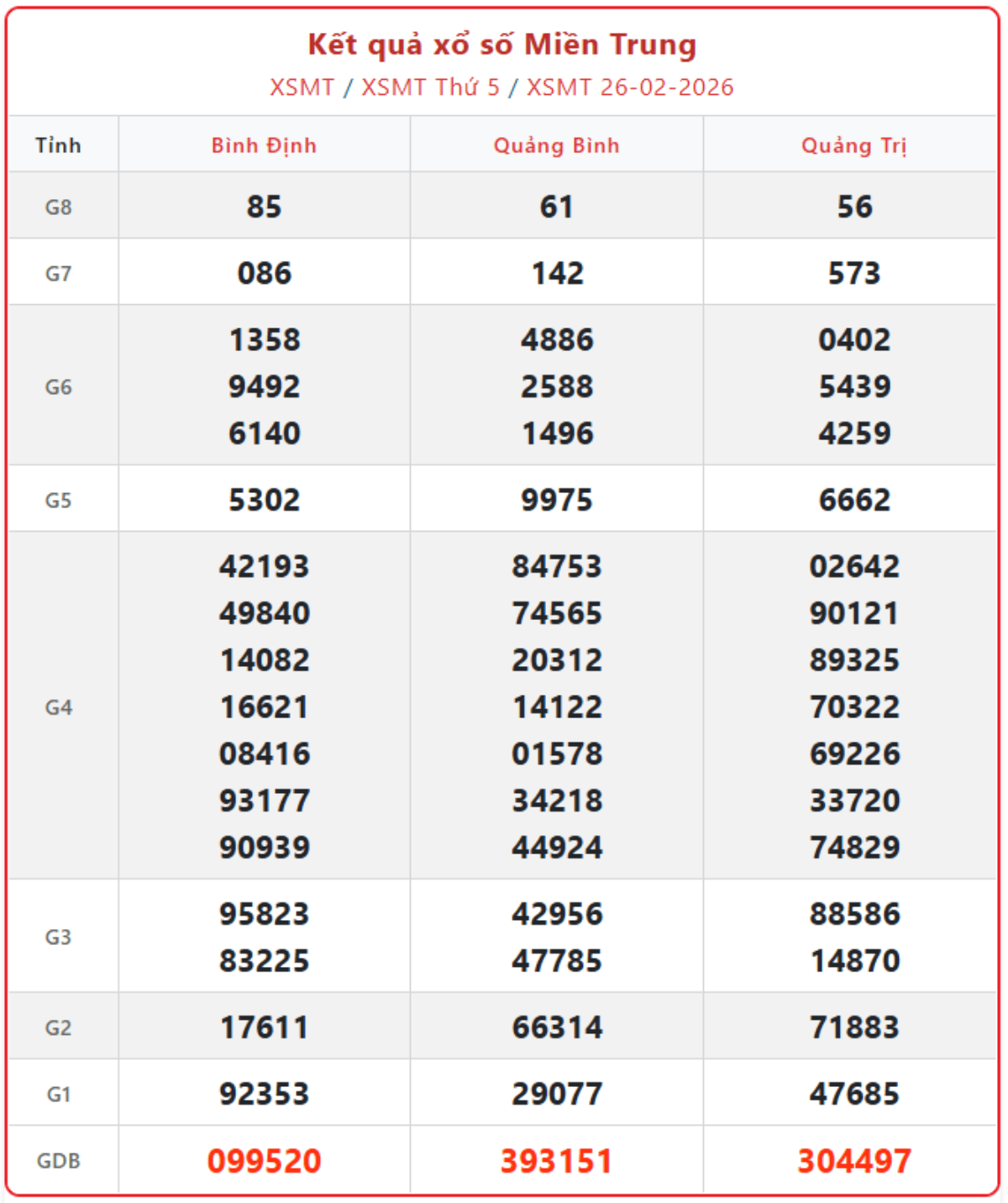- Dò số miền Trung ngày 26/2/2026. Tra cứu kết quả xổ số miền Trung ngày 26/2/2026