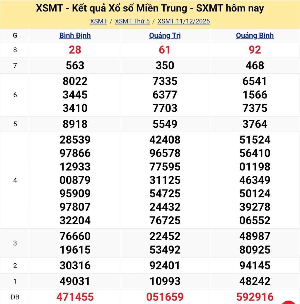 Trực Tiếp kết quả xổ số miền Trung 12/12/2025 - XSMT 12/12