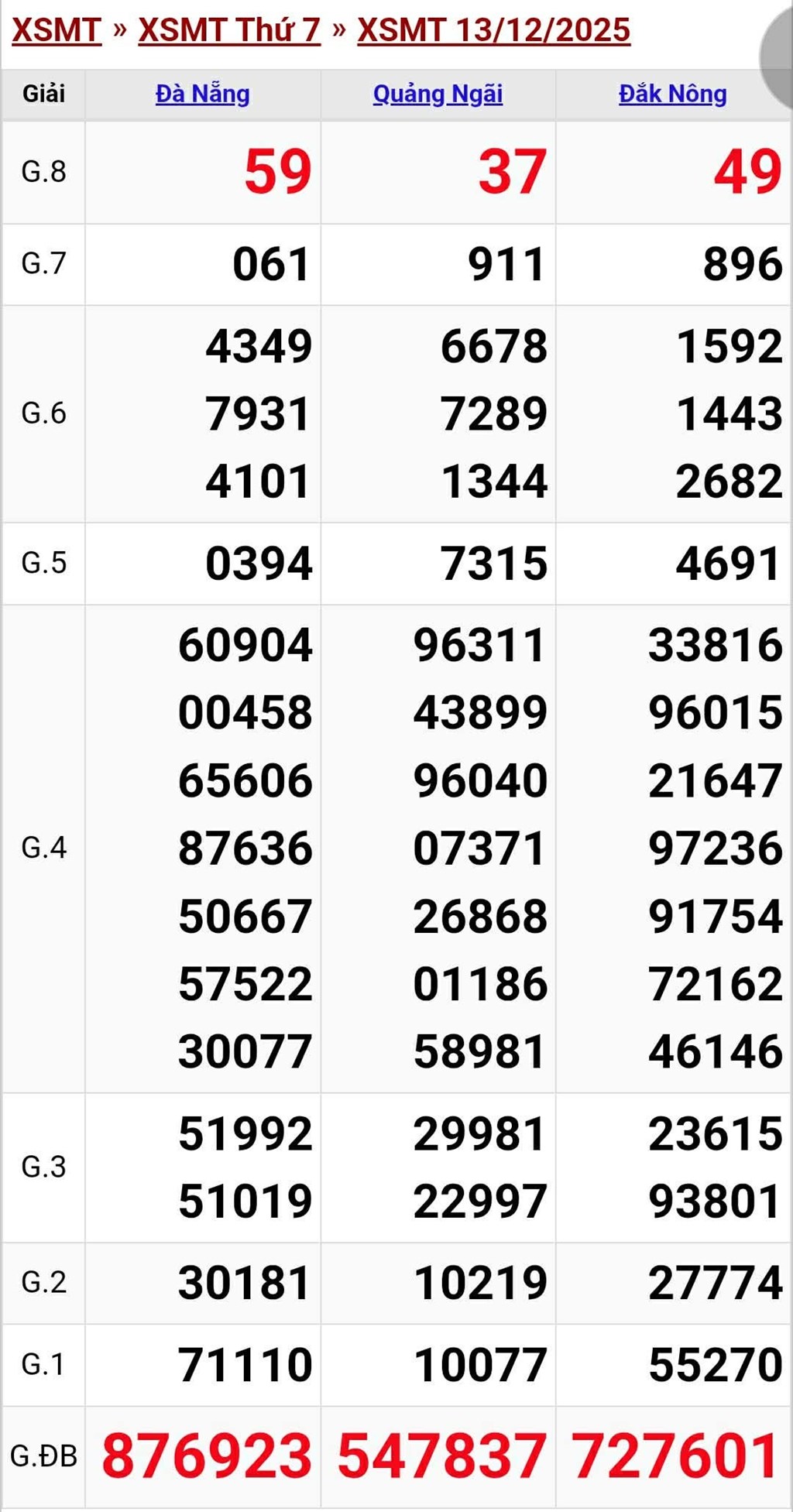 Kết quả xổ số miền Trung ngày 13/12. KQXSMT 13/12/2025. XSMT 13/12.