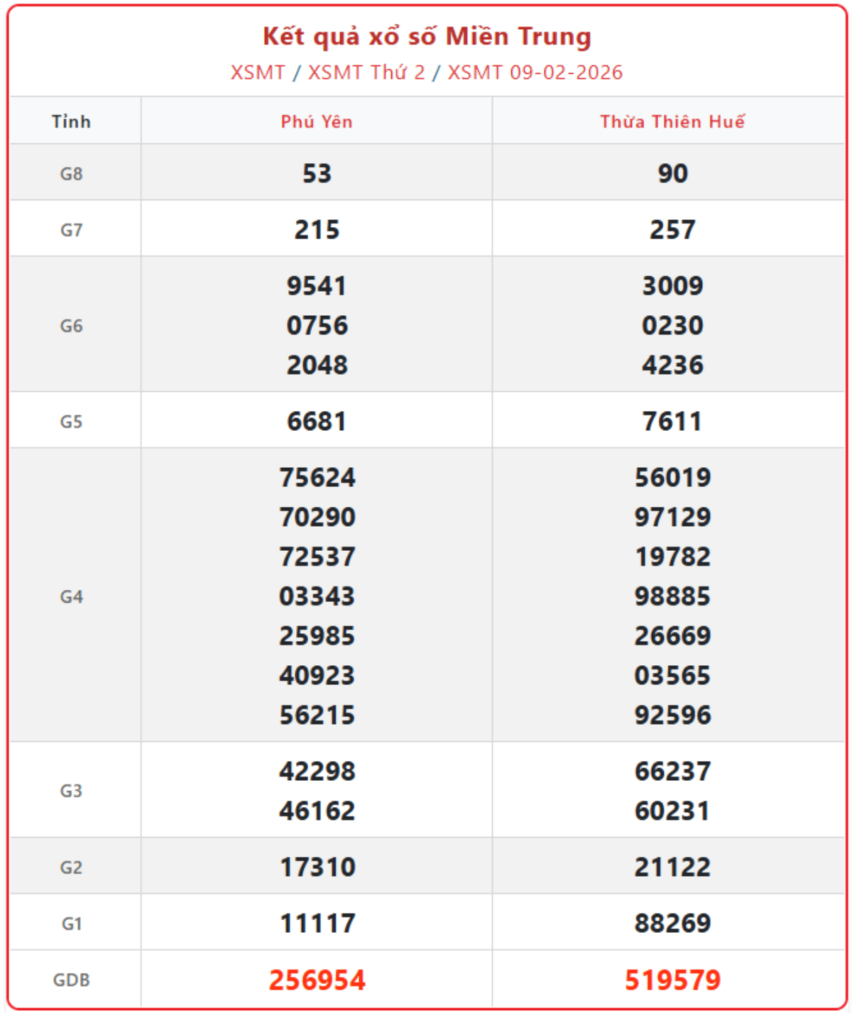 - Dò số miền Trung ngày 9/2/2026. Tra cứu kết quả xổ số miền Trung ngày 9/2/2026
