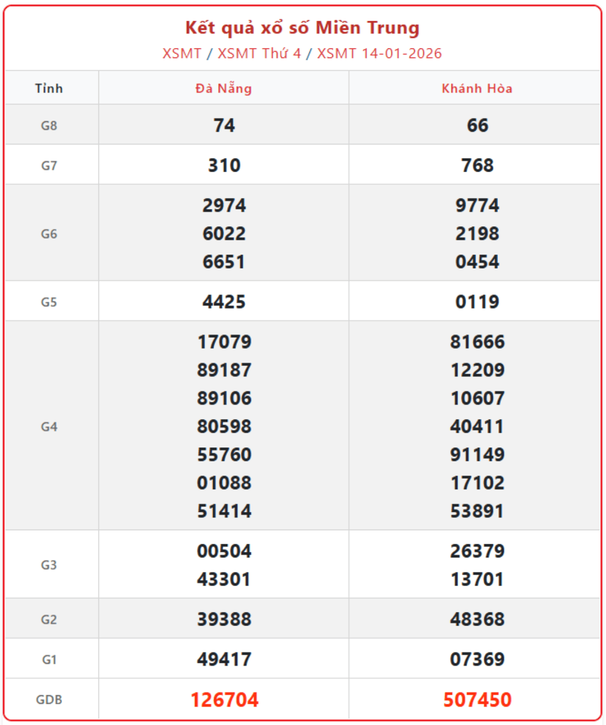 - Dò số miền Trung ngày 14/1/2026. Tra cứu kết quả xổ số miền Trung ngày 14/1/2026