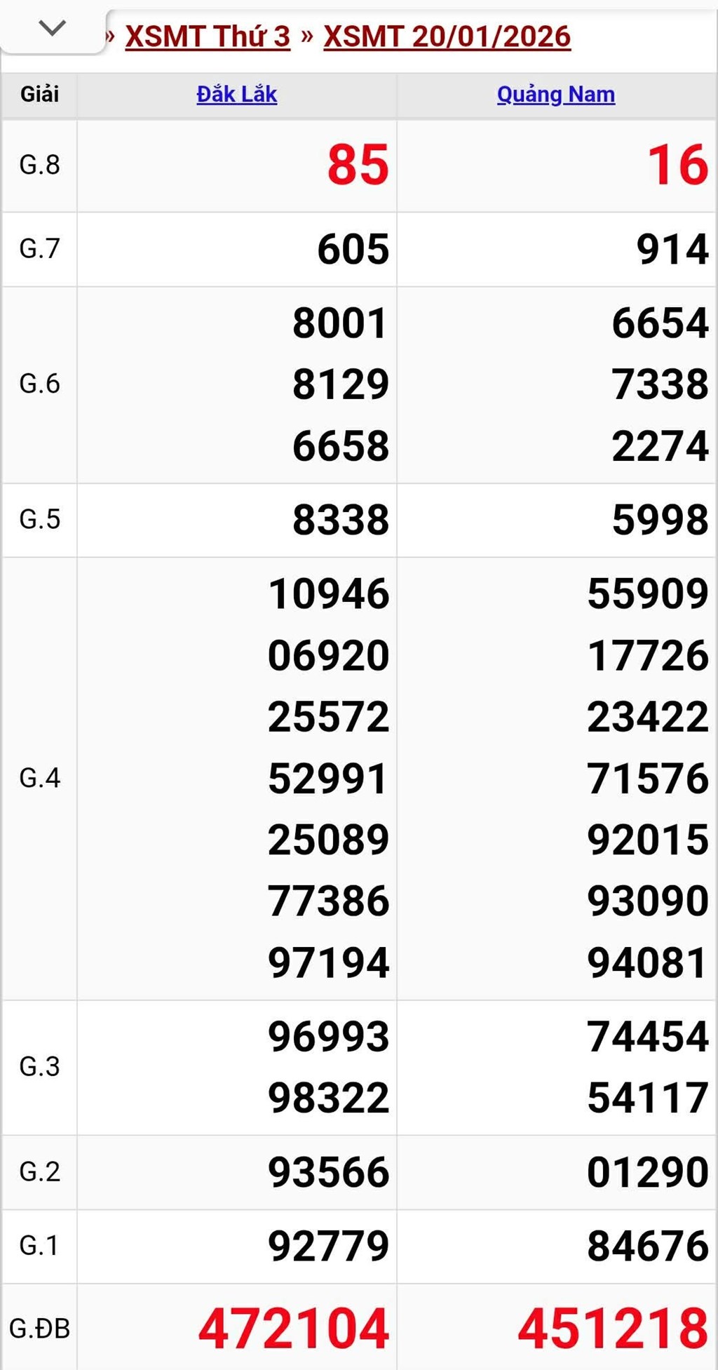Kết quả xổ số miền Trung ngày 20/1. KQXSMT 20/1/2026. XSMT 20/1.