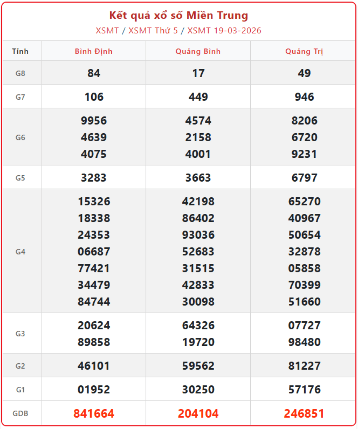 XSMT 19/3, kết quả xổ số miền Trung (KQXSMT) ngày 19/3/2026.