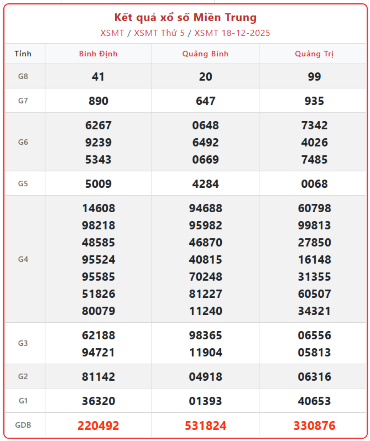 Xem kết quả vé số hôm nay ngày 18/12/2025, cập nhật KQXSMT thứ 5 hàng tuần đầy đủ, chính xác nhất.