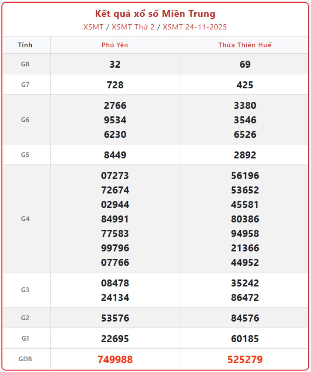 - Dò số miền Trung ngày 24/11/2025. Tra cứu kết quả xổ số miền Trung ngày 24/11/2025