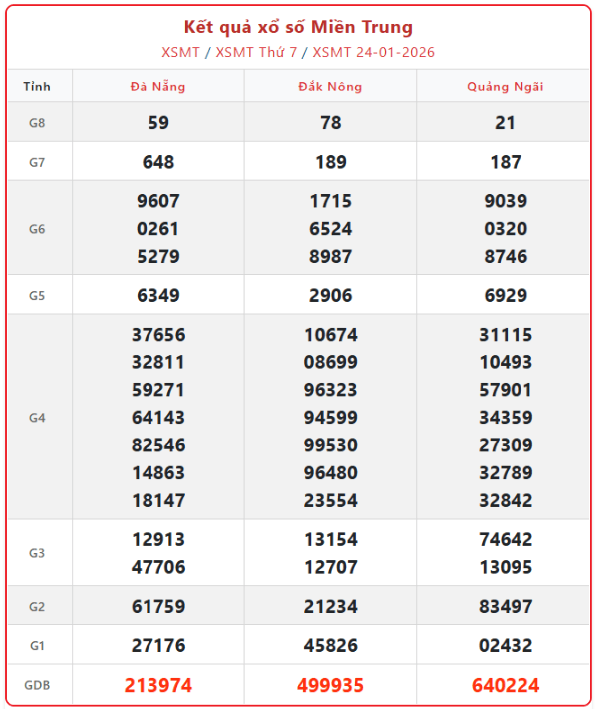 - Dò số miền Trung ngày 24/1/2026. Tra cứu kết quả xổ số miền Trung ngày 24/1/2026