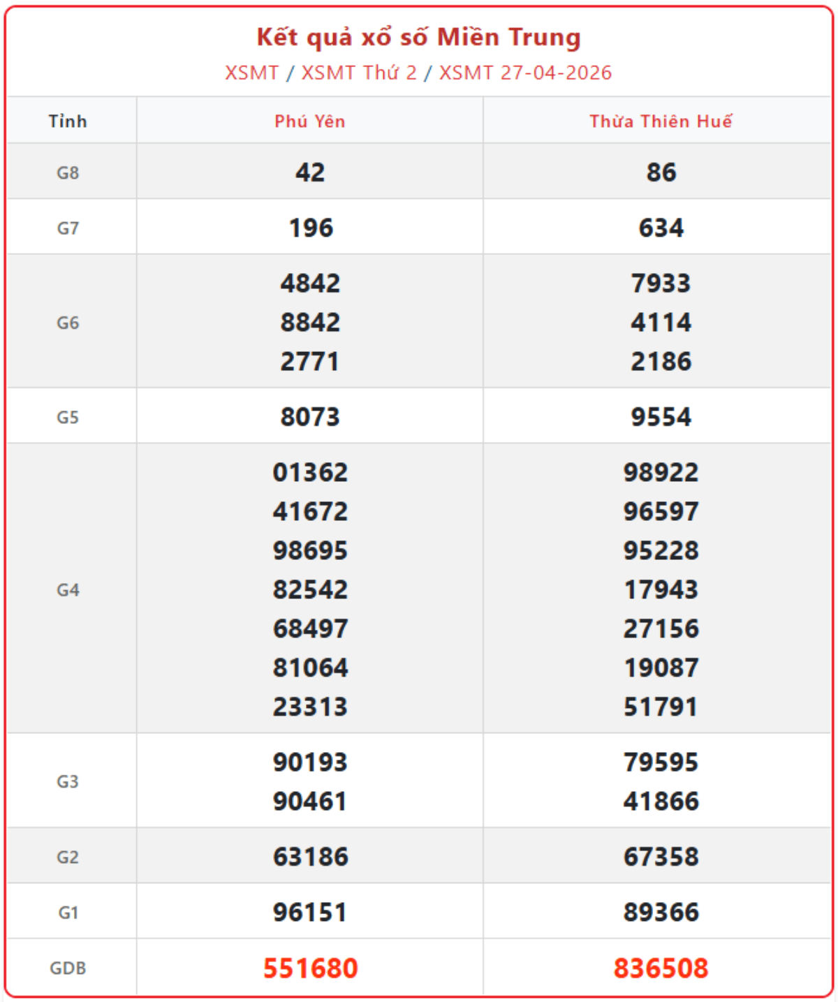 Kết quả xổ số miền Trung ngày 27/4/2026, cập nhật KQXSMT thứ 2 hàng tuần đầy đủ, chính xác nhất.