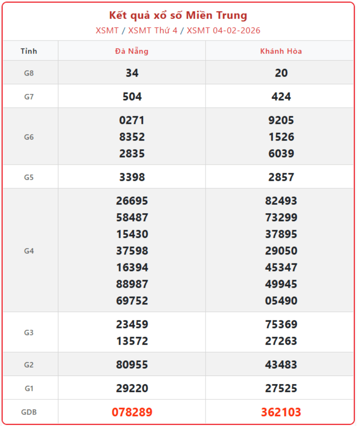 - Dò số miền Trung ngày 4/2/2026. Tra cứu kết quả xổ số miền Trung ngày 4/2/2026