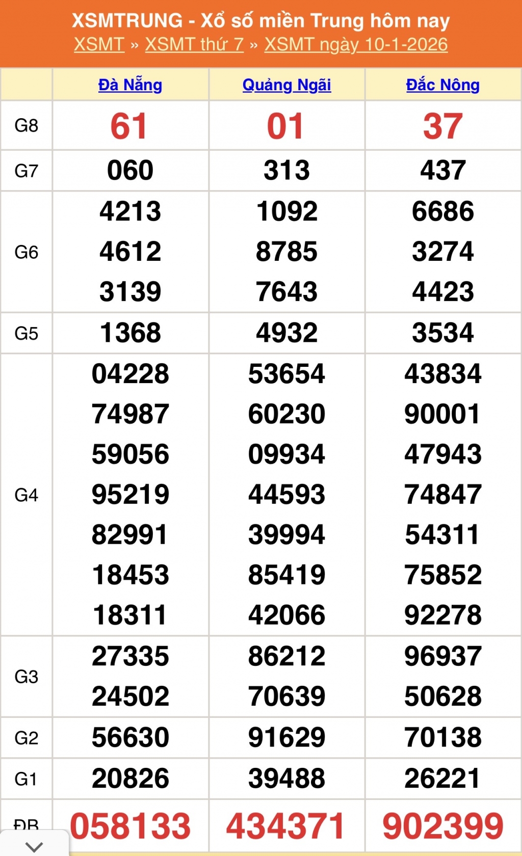 XSMT - Kết quả xổ số miền Trung hôm nay 10/1/2026 - XSMT 10/1 - KQXSMT