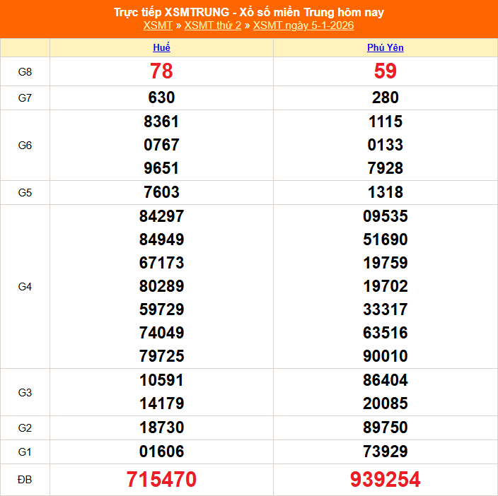 XSMT - Kết quả xổ số miền Trung hôm nay 5/1/2026 - XSMT 5/1 - KQXSMT