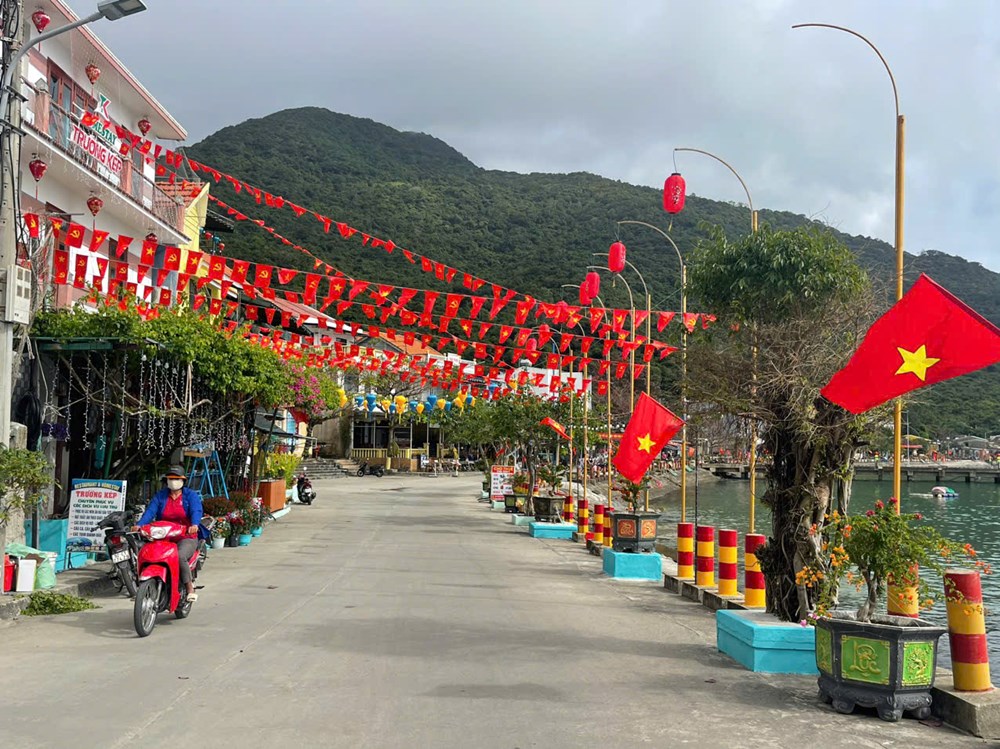 Các điểm đến, không gian công cộng ở Cù Lao Chàm đã được sửa soạn, trang trí rực rỡ đón chào Tết Bính Ngọ