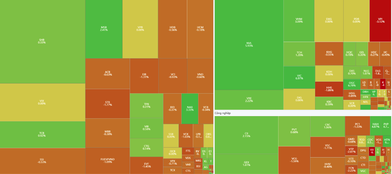 Bước sang phiên giao dịch chiều, chỉ số chung ghi nhận lực cầu trở lại mạnh mẽ từ nhóm Vingroup giúp chỉ số chung đảo chiều tăng trở lại. Nổi bật trong phiên chiều đến từ nhóm cổ phiếu bất động sản với (NVL +5.93%), VHM (+3.09%), VIC tăng trần giúp chỉ số tiếp tục nới rộng đà tăng và củng cố lại vùng điểm 1.860.
